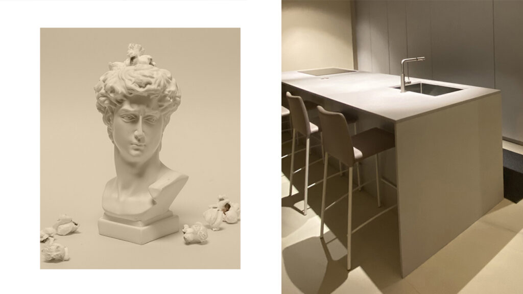 But that is not enough, because it’s a waste to just watch the sea – the fascinating sea of Sicily! – isn’t it? You also have to live it. And so it is easy that in a real seaside home the floors both outside and inside are often soiled with sand, pebbles, earth and shell fragments. The ideal flooring material must be hygienic, easy to clean and scratch-resistant. Laminam ceramic surfaces are perfect: compact and durable. If we had used resin, we would have had a “sea” (it has to be said!) of problems related to wear and cleaning difficulties.