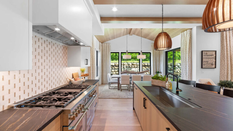 Twin Hollow Villa is a luxury residence in the state of Utah – USA, designed by Interior Concepts Design House for X3 Homes builder. The building renews the traditional model of the ‘cottage’ typical of Dutch colonial architecture, with its stone walls and pitched roofs. This choice is also reflected in the interior design, where luxury is never ostentatious and baroque rather it prefers to draw on forms and patterns featuring an ethnic and country flavor. The use of natural materials is therefore widespread: wood, textiles, mats, carpets and marble.