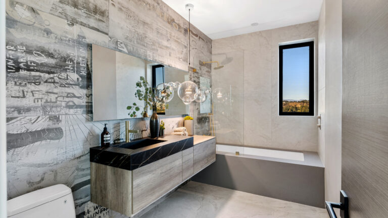 Nero Greco proposes the refinement of an ancient and noble material, marble, even for the top of one of the residence’s enchanting bathrooms. The fullness of the dark colour, enhanced by the delicate light veins, hides an unprecedented desire to impress with the timeless seduction evoked by this timeless material.