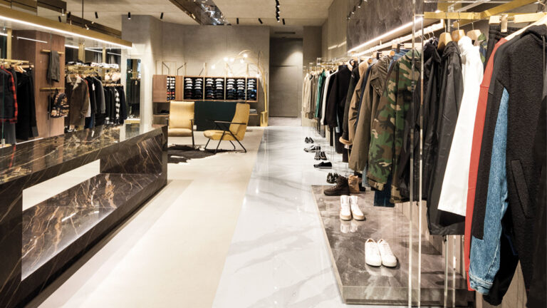 Réalisée à l’aide d’une technologie avancée, la plaque Laminam combine une épaisseur réduite et une grande dimension avec une résistance élevée aux contraintes, ce qui la rend idéale pour une utilisation, par exemple sur les sols, dans les espaces avec un taux de passage élevé. En plus de cela, elle est extrêmement facile à nettoyer : il suffit d’utiliser de l’eau chaude et des détergents neutres pour nettoyer la surface céramique sans courir le risque de la voir s’abîmer en peu de temps. C’est la solution idéale pour le Fashion Retail, où il est primordial d’assurer une hygiène maximale et un nettoyage fréquent des matériaux.