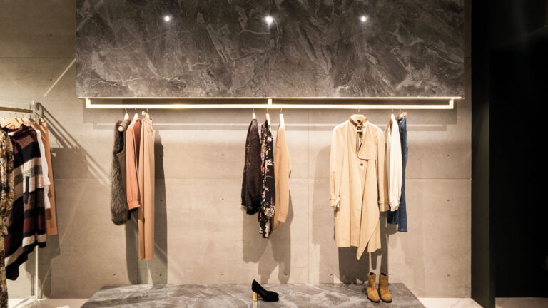 En effet, les dernières tendances exigent de plus en plus que le point de vente soit conçu de manière à être modulable et à s’adapter aux changements constants et continus des produits. Mais pas seulement ! Les espaces de vente actuels, notamment parce qu’ils doivent tenir tête au numérique, sont de plus en plus enclins à accueillir des événements supplémentaires : qu’il s’agisse de l’inauguration d’une collaboration, d’un cocktail de bienvenue, d’une exposition d’art ou d’autres moments de rassemblement, le magasin de vêtements s’apparente de plus en plus à un concept store. La flexibilité est donc un principe à prendre fortement en considération, afin d’impliquer la clientèle dans une relation de fidélité renforcée qui ne se limite pas à l’achat. Dans cette relation de reconnaissance mutuelle, les plaques Laminam sont parfaitement adaptées. Grâce à leur exceptionnelle polyvalence, elles permettent au concepteur de s’appuyer non seulement sur des modalités d’application et de présentation différentes et hétérogènes, mais aussi de compter sur des surfaces à forte identité, distinctes et facilement reconnaissables, qui finissent par faire partie intégrante de la culture de la marque.