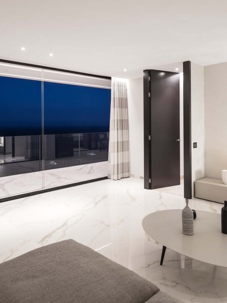 “The materials used are made to last but also – and above all – to impress,” the architects conclude. A goal achieved in partnership with Laminam, the Italian multinational with a sustainable green identity known as the first company worldwide in the ceramics sector to produce large sized yet exceptionally thin slabs. Indeed, the villa owes its impressive total look aesthetics to Laminam’s finishes: I Naturali – Calacatta Oro Venato, I Naturali – Calacatta Oro Venato Lucidato and Filo – Mercurio (for all except the master bathroom). These finishes are inspired by natural materials but feature greater levels of technical performance.