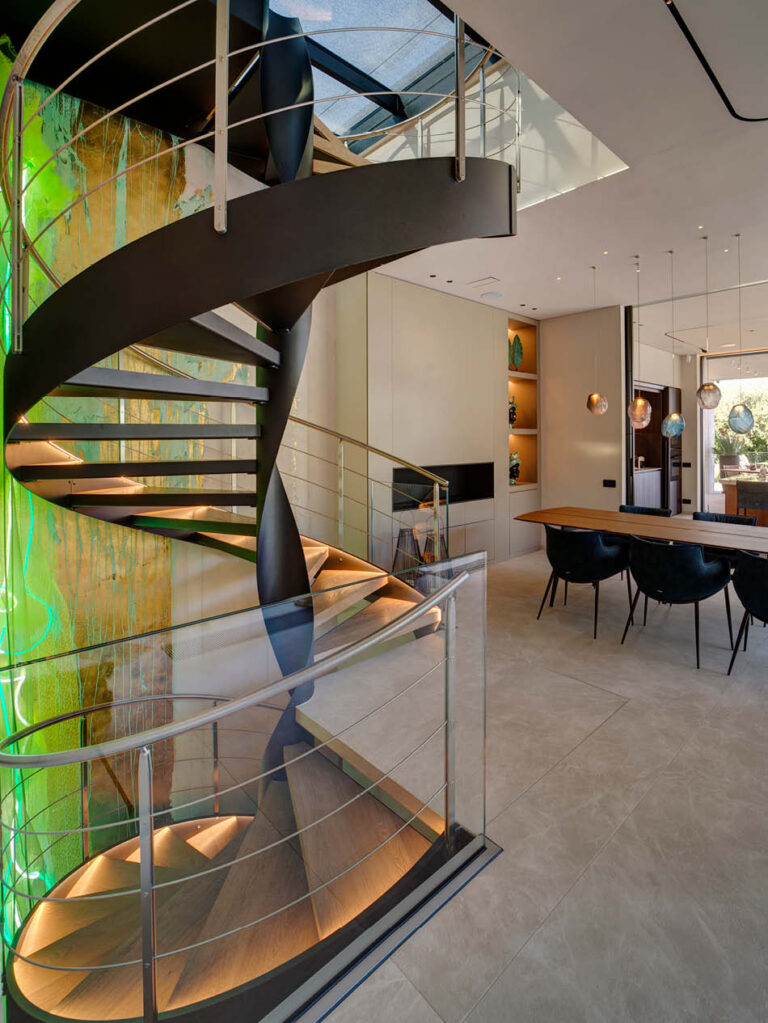 Villa Emerald stabilisce connessioni non solo fra natura e architettura, ma anche fra architettura e arte: grande attenzione è stata posta nella scelta dei materiali e delle finiture, oltre che dei componenti di arredo, in un insieme sempre raffinato, mai eccentrico.