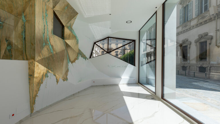 In linea con un nuovo modo di abitare, strettamente legato alla storia della città e alla riqualificazione del contesto urbano, il progetto di ammodernamento di “Domus Lascaris” si basa dunque sul dialogo continuo tra spazi pubblici e privati. Spostando lo sguardo dalla facciata esterna agli spazi interni, le grandi vetrate al primo piano consentono di indugiare sull’atrio moderno – anch’esso rivestito con superfici Laminam – dal quale si accede ad una galleria d’arte aperta al pubblico.
