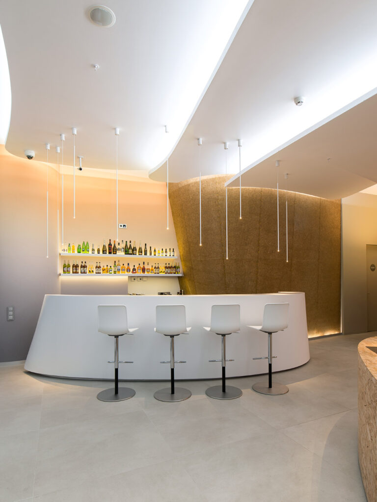 The VIP lounge with its expansive glazing overlooking the charming landscape of the Rostov countryside is arguably one of the most interesting areas of the airport from the architectural standpoint. Vox Architects designed the project and created interiors aimed at preserving and enhancing the natural panorama surrounding the airport. Furniture is placed to secure unlimited views. The natural theme is picked up in the choice of cork and porcelain stoneware as materials.