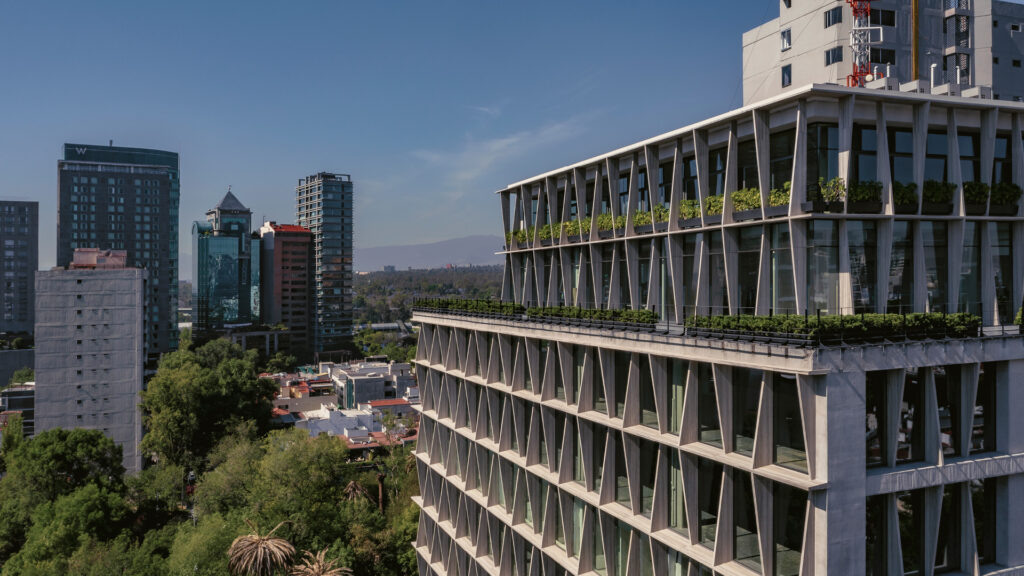 Exclusividad residencial con una filosofía ecosostenible: el galardonado Studio Donis lleva la arquitectura más vanguardista a Ciudad de México y elige I Naturali de Laminam para su icónica fachada alveolar.
